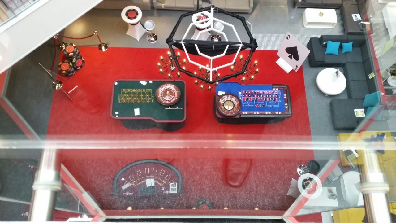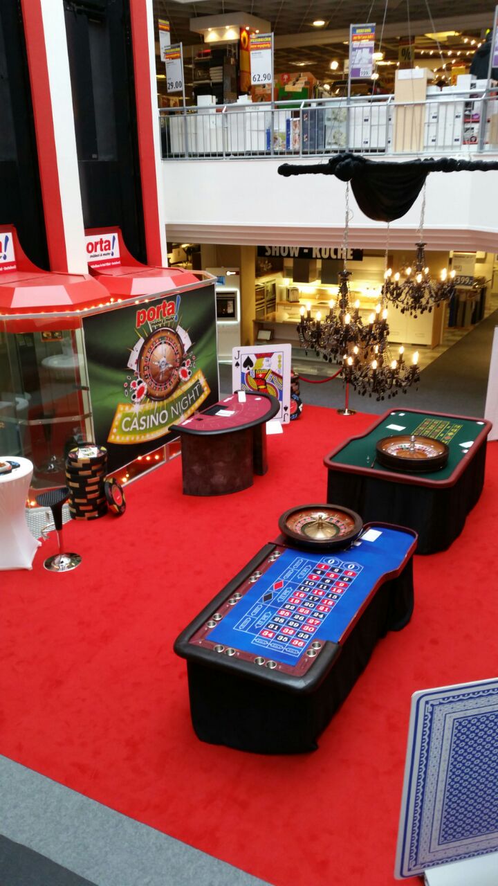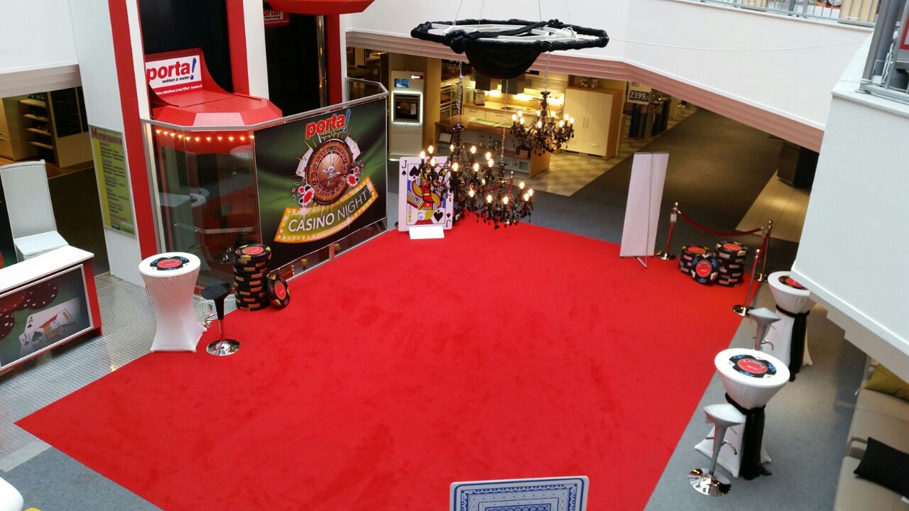 Gerade mit unserem mobilen Casino und den großen Roulette und BlackJack Tischen sehen Kunden schon von weitem das hier eine Aktionsfläche ist. Der große rote Teppich und die auffällige Casino Dekoration verstärken den Effekt zunehmends.